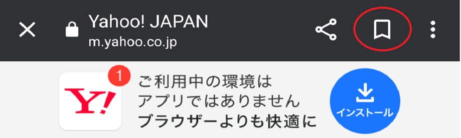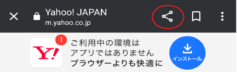 ちなみに、リンク(URL)を共有するには、Googleアプリでウェブサイトを開いて、以下の画像の右上の赤丸で囲った部分にある記号を押すと、メールなど様々な方法でリンク(URL)を共有することができます。